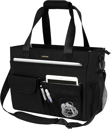 Teacher Tote Bag with Laptop Compartment, Large Utility Work Tote Bag with15 Pockets for Women, Nurse Bag, Black