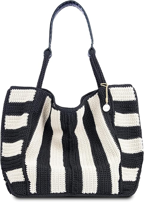 The Sak Los Feliz Large Tote Bag - Hand-Crocheted Women's Handbag for Everyday and Travel, Durable, Large Purse With Shoulder Bag Strap and Zipper Pocket, Black Stripe