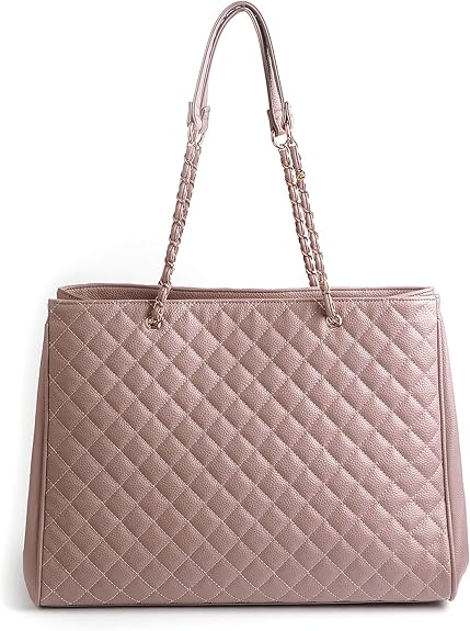Women's Large Travel Tote Quilted Purse and Work Laptop Handbag - Rose Gold Hardware With Satin Interior