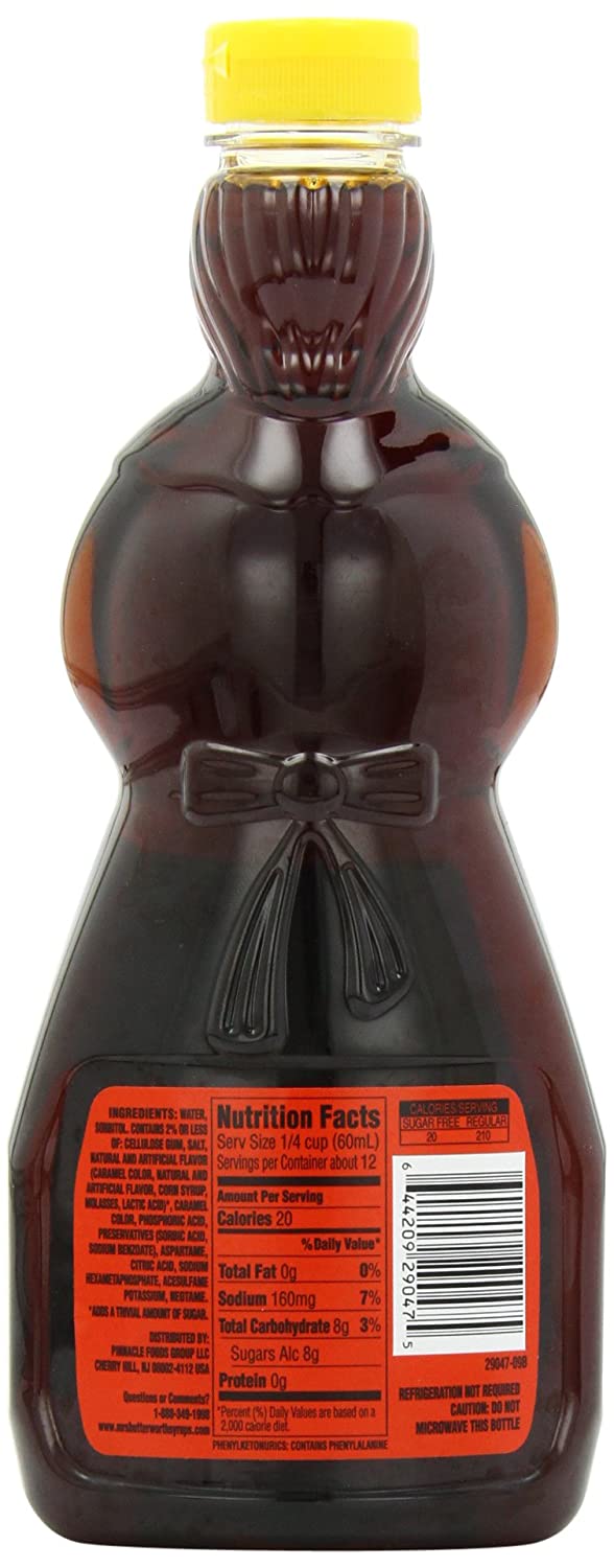 Delighting families since 1961, the iconic bottle isn’t the only reason Mrs. Butterworth’s has long been a family favorite. Known for her delicious, buttery taste and slow pour, Mrs. Butterworth’s syrups help make breakfast into mouth-watering fun. For over 50 years, Mrs. Butterworth’s has been offering America’s favorite breakfast selections and is popular with kids and adults alike – a true American icon. Whatever variety you choose, you will be sure to enjoy her thick and rich syrups, and her delectable pancake and waffle mixes. Turn any table into the family breakfast table. Enjoy the thick, rich, and buttery taste of Mrs. Butterworth's syrup in Original, Lite, and Sugar Free varieties. Great on pancakes, waffles or as a topping for oatmeal. Mrs. Butterworth’s Sugar Free syrup contains 80% fewer calories than original syrup and 0g of sugar per serving so you can enjoy your pancakes guilt free. Mrs. Butterworth's Sugar Free Syrup has that iconic maple flavor you have come to expect from Mrs. Butterworth's Syrups.