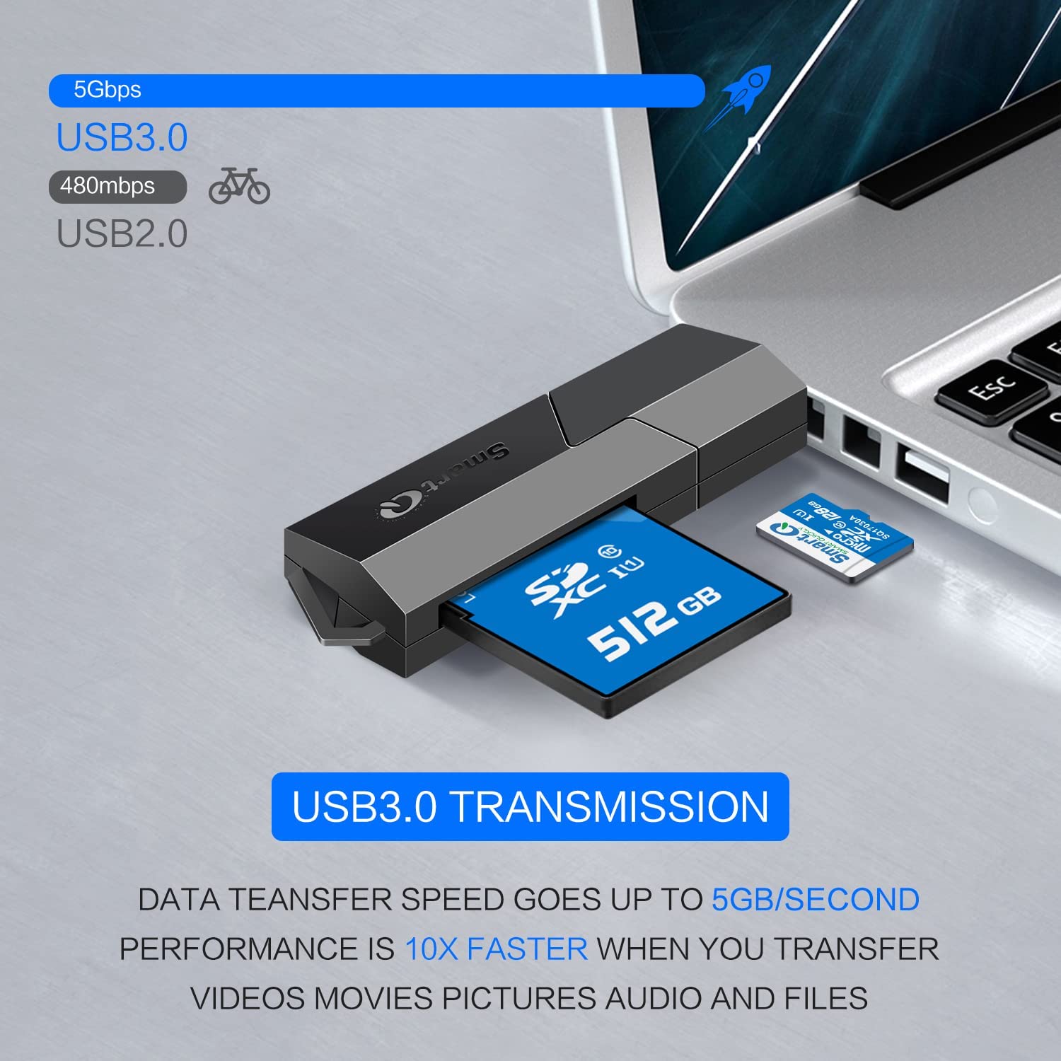 This product has been designed to deliver fast data transfer speeds to support the next-generation high-speed SDXC (secure digital high capacity) and micro SDXC cards. Never worry about the hassle of file sharing again because you can simply plug this tool directly into the USB port on any desktop or tablet. The combination of the fast speed delivered by USB 3.0 and compatibility with SDXC/micro SDXC makes this small device the perfect companion when you need to manage high definition videos or high-resolution images. This product also features a new, more efficient design with a sliding cap attachment, allowing for easier Usability, and you'll never lose another cap again that is just another reason why this design is ideal for travel, with its all-in-one design so you won't lose parts or pieces when you're out exploring. You will love how this device gives you the new freedom of sharing anytime, any place without the hassles you've been accustomed to. Whether business or pleasure, you will find c307 ideal for managing your files, photos, videos and more technical specifications:- Memory card reader supports SDHC, SDXC, micro SDHC, micro SDXC cards - compliant with universal serial bus specification revision 2.0/3.0 - compliant with USB mass storage class bulk only transport specification rev. 1.0 - compliant with multimedia card system specification version 4.4 - support super-speed(5gpbs), high-speed (480mbps) and full-speed (12mbps) data transfer - support USB2.0/USB3.0 power saving mode - support windows 8 32-bit and 64-bit, 7 32-bit and 64-bit, vista 32-bit and 64-bit with default driver - support windows XP/2000/ME and MAC OS x with default driver - size 68.5mm (l) x 19.0mm (w) x 13.0mm.