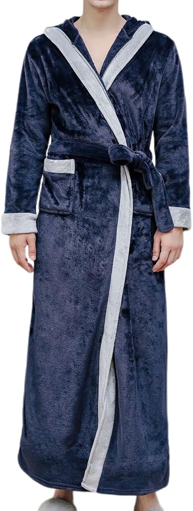 Lu's Chic Men's Fuzzy Bath Robe Fleece Flannel Spa Robes Warm Bathrobe Long Sleeve Winter