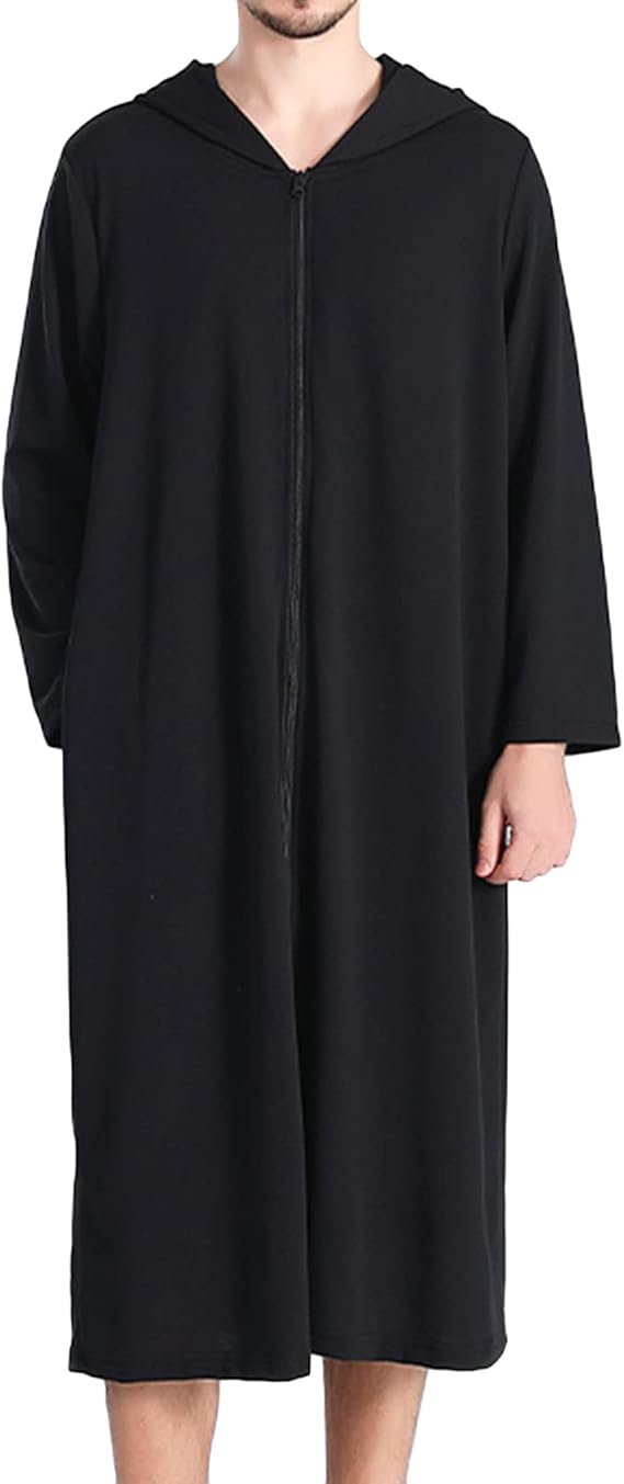 Lu's Chic Men's Long House Coat Hoodie Zip Up Robes Hooded Light Zipper Cozy Housecoat