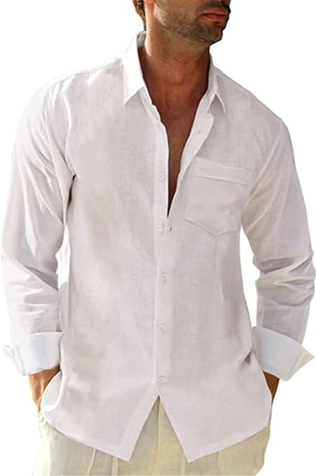 Mens Casual Linen Cotton Button Down Short Sleeve Shirts Cuban Camp Guayabera Beach Tops