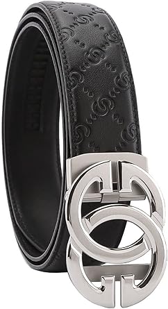 Men's Personalized Embossed Leather Belt with Automatic Buckle Ratchet Dress Belt, Adjustable Length