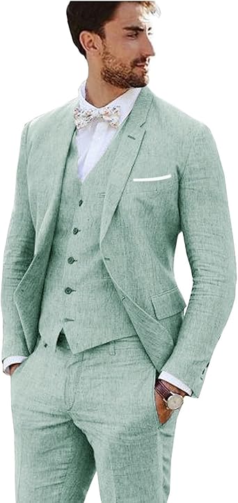 Linen Suit 3 Pieces Vintage Retro Wedding Prom Suits Slim Fit Jacket Blazer Groom Tuxedos