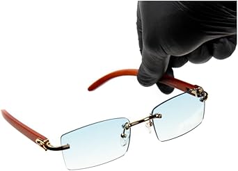 Baby Blue Gradient Tint Rimless Men Women Gold Frame Rectangle Sun Glasses Vintage Woodgrain Square Shades 90s Retro Unisex Hip Hop Frameless Stylish Designer Wood Arm Sunglasses