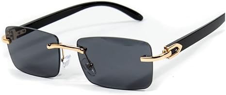 Mens Gold Frame Black Tint Rimless Square Trendy Cool Woodgrain Vintage 90's Old School Dark Tint Shades Retro Rectangular Men Hip Hop Sunglasses