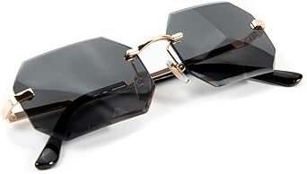 Men's Vintage Black Tint Rimless Luxury Octagon Gold Frame Sunglasses