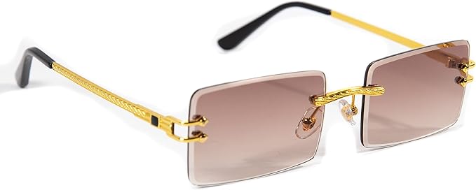 Men's Vintage Gold Frame Brown Tint Square Rimless Hip Hop Sunglasses