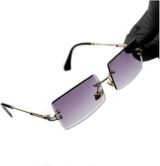 Mens Vintage Rectangle Gold Purple Gradient Tint Sunglasses