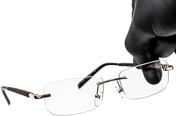 Men's Women's Rimless Narrow Rectangle Luxury Vintage Retro 90's Gold Frame Designer Clear Lens Eye Glasses Unisex Woodgrain Arm Square Trendy Fashion Hip Hop Glasses