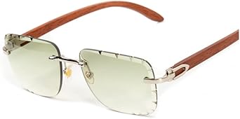Square Silver Metal Frame Gem Cut Rimless Trendy Mint Green Gradient Tint Unisex Sun Glasses Men's Retro 90's Hip Hop Woodgrain Rectangle Frameless Diamond Cut Lens Wood ArmShades Sunglasses