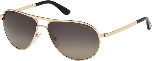 Tom Ford 0144 28D Silver 0144s Aviator Sunglasses Polarised Lens Category 3, Shiny Rose Gold, 58-13-140
