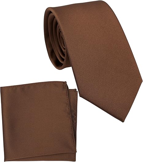 Regular Tie and Pocket Square for Men, Solid Color Necktie Set, 3.2 inch Standard Width