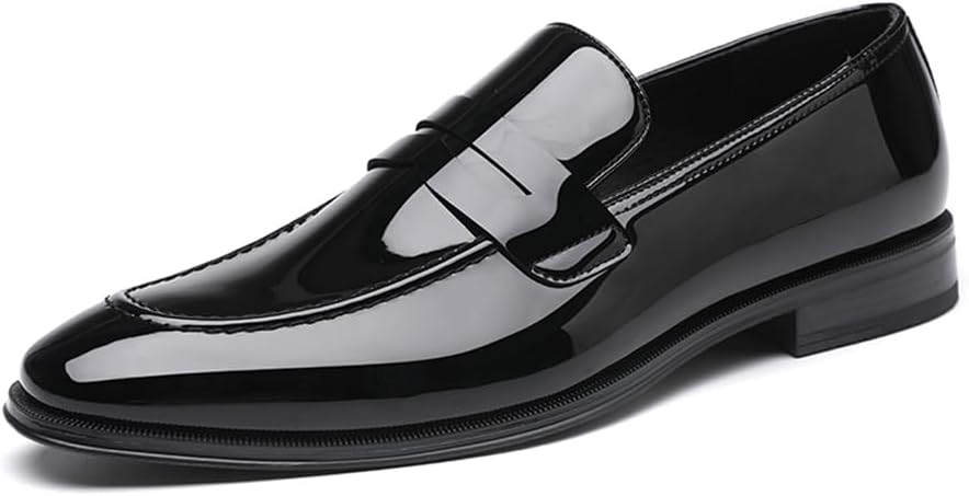 DECARSDZ Mens Faux Patent Leather Classic Lace-up Formal Oxford Tuxedo Dress Shoes Men Wedding Shoe