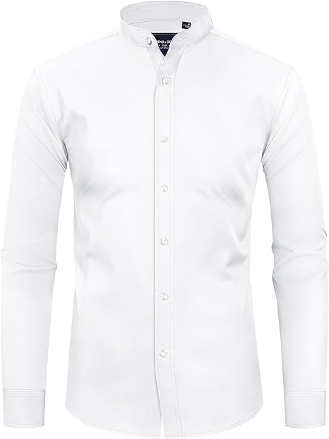Alimens & Gentle Men's Banded Collar Dress Shirts Wrinkle Free Long Sleeve Mandarin Collar Button Down Shirt
