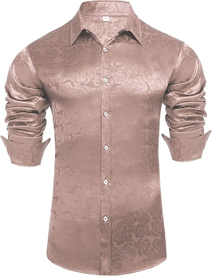 Daupanzees Mens Long Sleeve Fashion Rose Design Jacquard Dress Shirt
