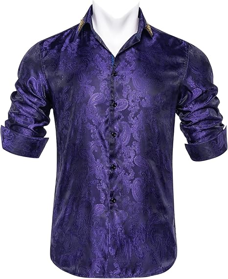 DiBanGu Paisley Dress Shirts for Men Woven Silk Formal Casual Shirt Button Up Long Sleeve Shirts Business Wedding Prom