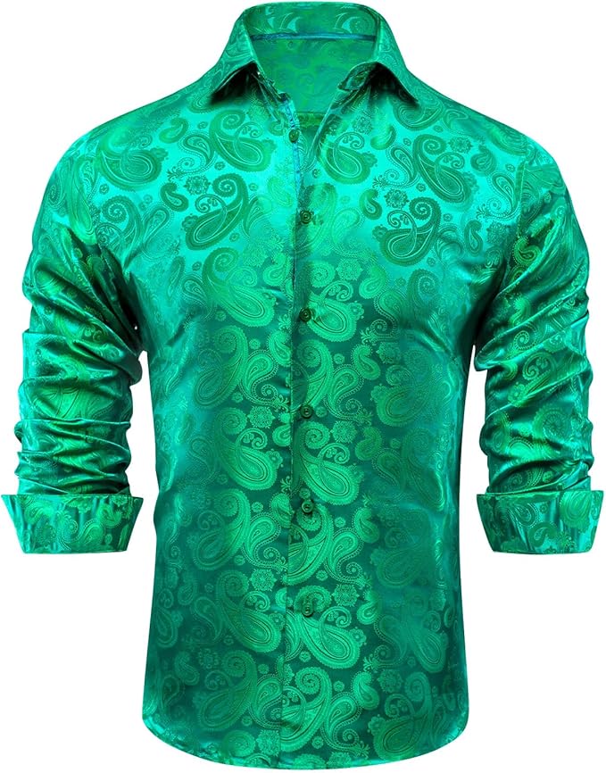 Dubulle Mens Long Sleeve Dress Shirt Floral Paisley Casual Button Down Shirts for Men Wedding Suit