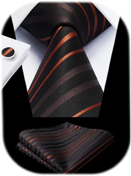 Enlision Mens Ties Stripe Tie and Pocket Square Set Classic Formal Woven Neckties Handkerchief Cufflinks Wedding