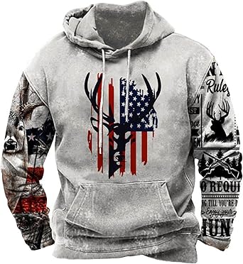 Men's Hooded Sweatshirt American Flag Print Long Sleeve Pullover Sweatshirt Vintage Tribal Aztec Graphic Hoodie Tops