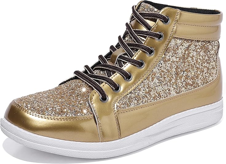 Trsorini Mens Glitter Sparkly Shoes Bling Sequin Lace Boots Fashion Sneakers High Top Casual Shiny Shoes