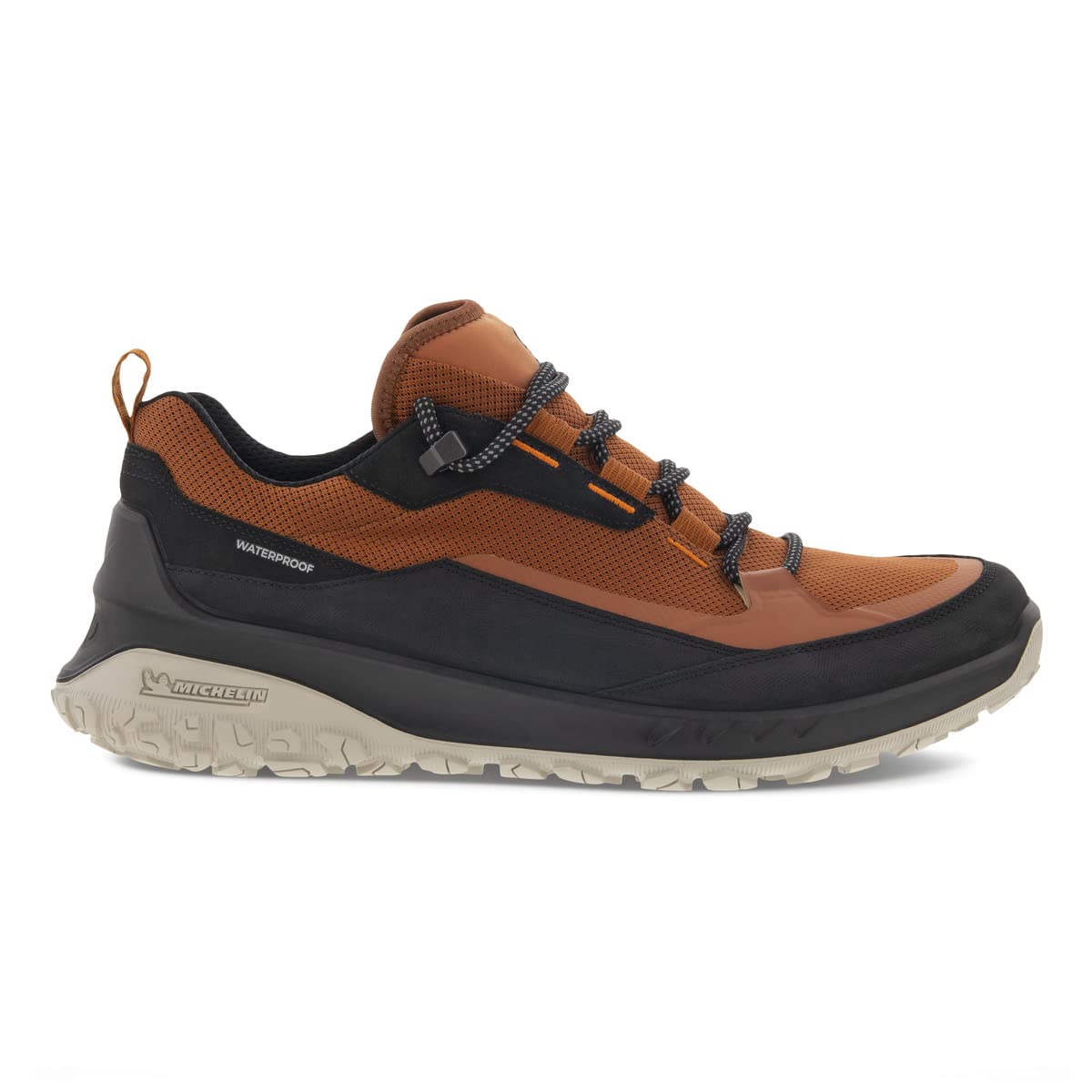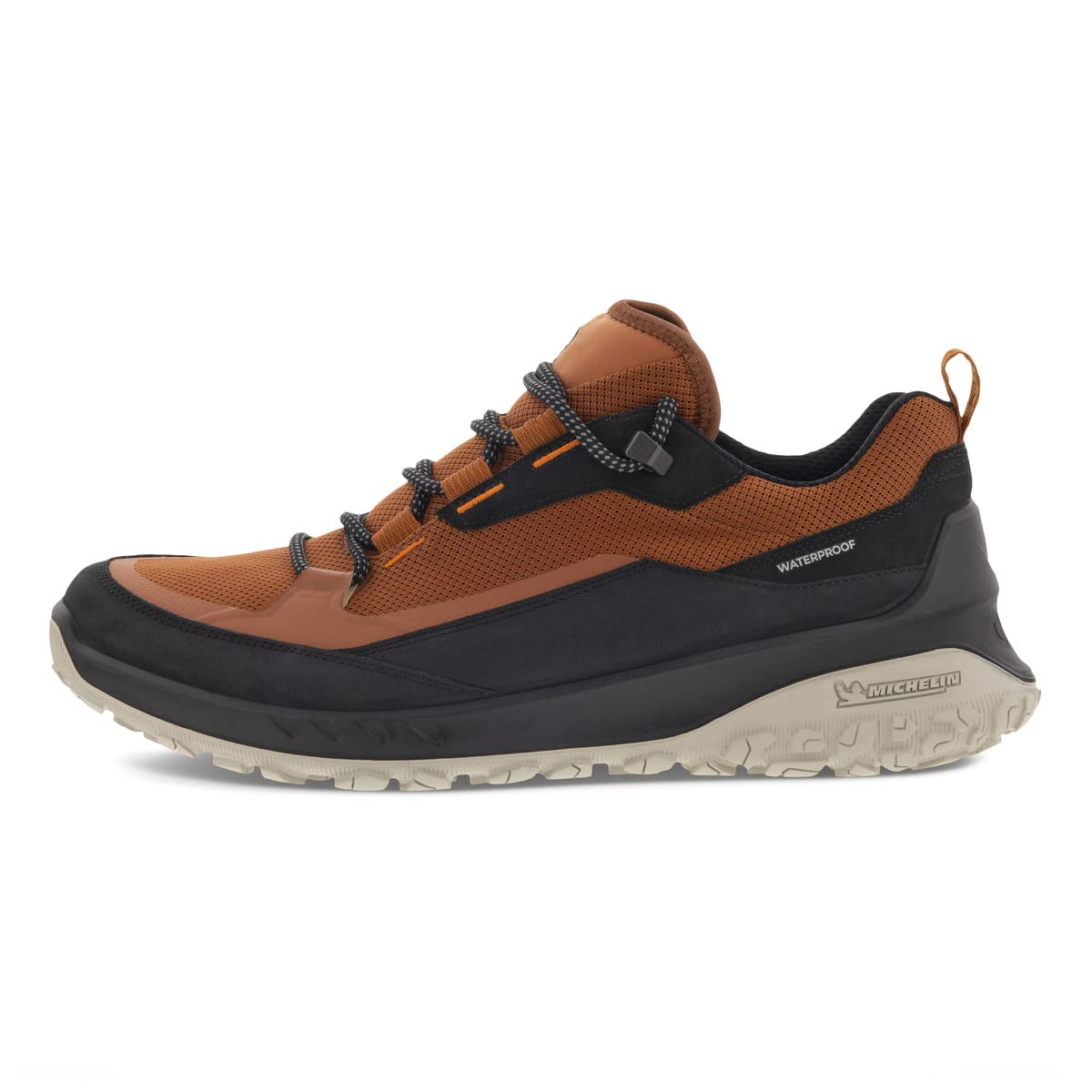 ECCO Men's Ultra Terrain Waterproof Low Hiking Shoe, Black/Cognac, 9-9.5