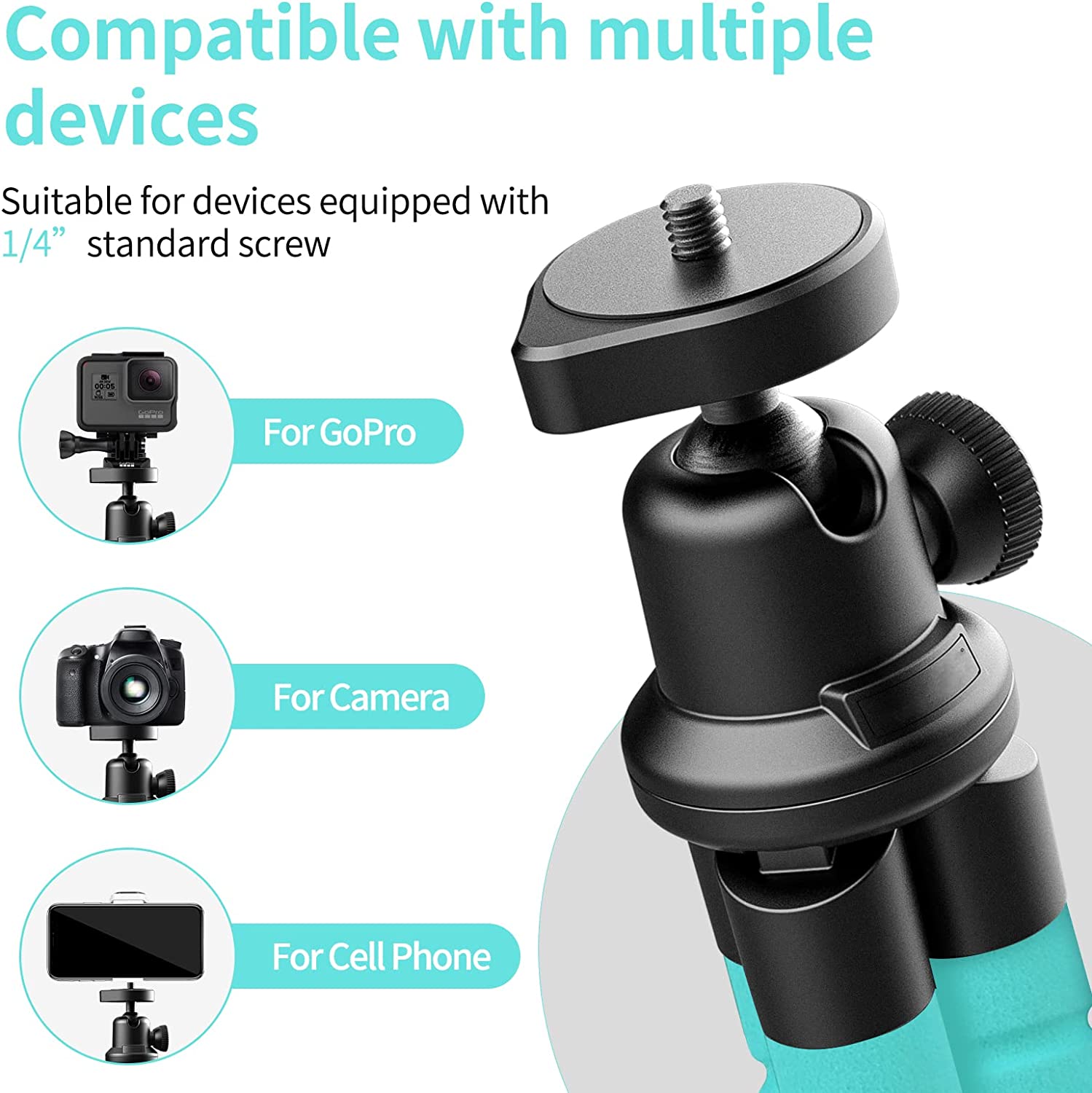 • Flexible and Rotatable-The legs are bendable to set on various occasions. The 360°rotatable ball head allows for complete and precise control over the angle and direction of the device, enabling you to take an outstanding landscape or portrait image.