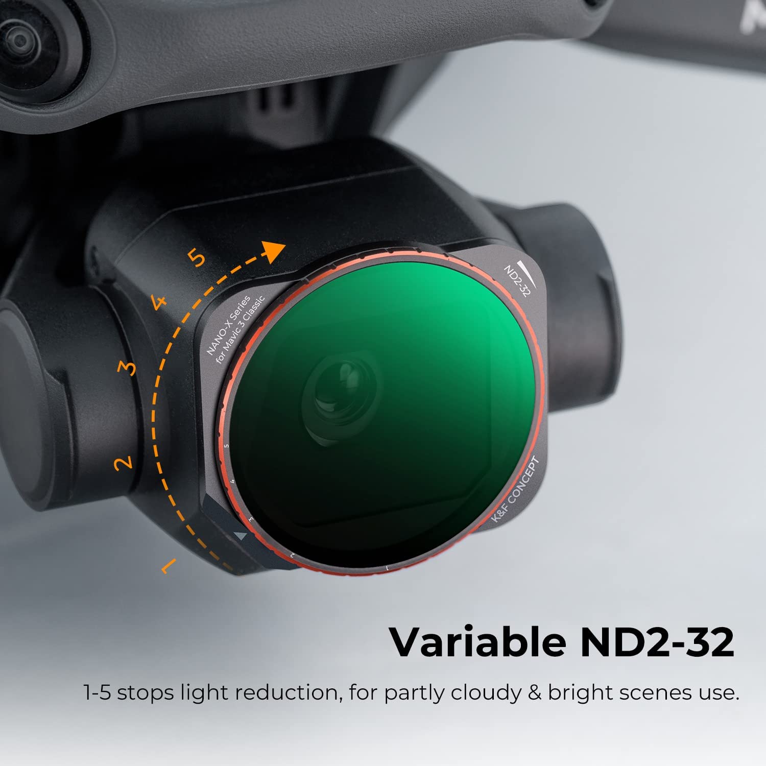 K&F Concpet Mavic 3 Classic Variable ND Lens Filters Kit ND2-32+ ND32-512 (2 Pcs), Variable Neutral Density Lens Filter 1-5 Stops + 5-9 Stops Compatible with DJI Mavic 3 Classic