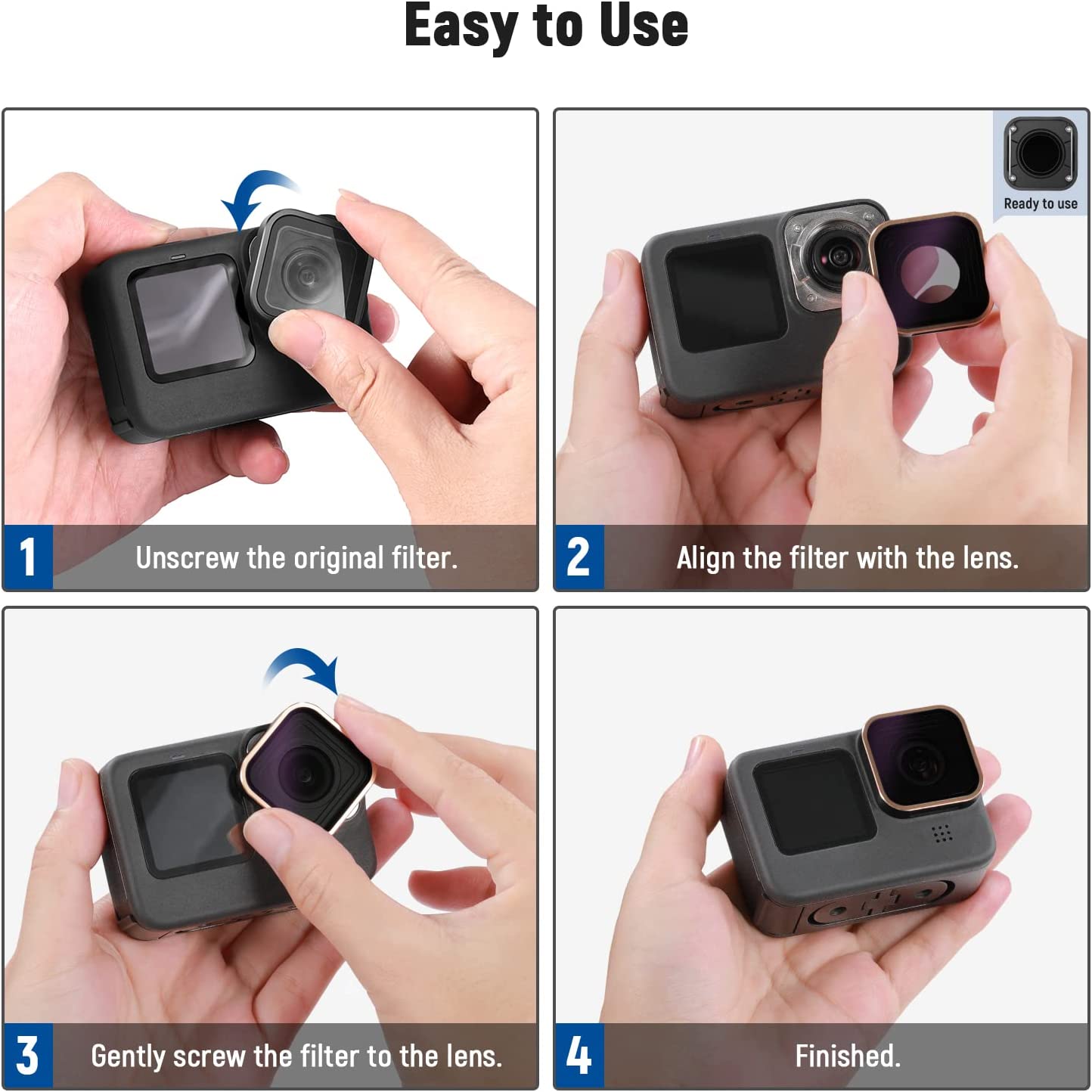 • NOTE: ONLY compatible with GoPro Hero 11 Hero 10 and Hero 9 camera lens; Please check your model before ordering