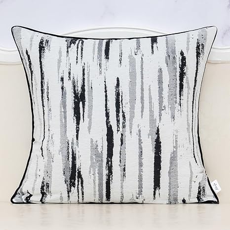 Alerfa 20 x 20 Inch Square Black White Minimalist Abstract Stripes Chenille Jacquard Cushion Case Luxury Modern Throw Pillow Cover Decorative Pillow for Couch Living Room Bedroom Car