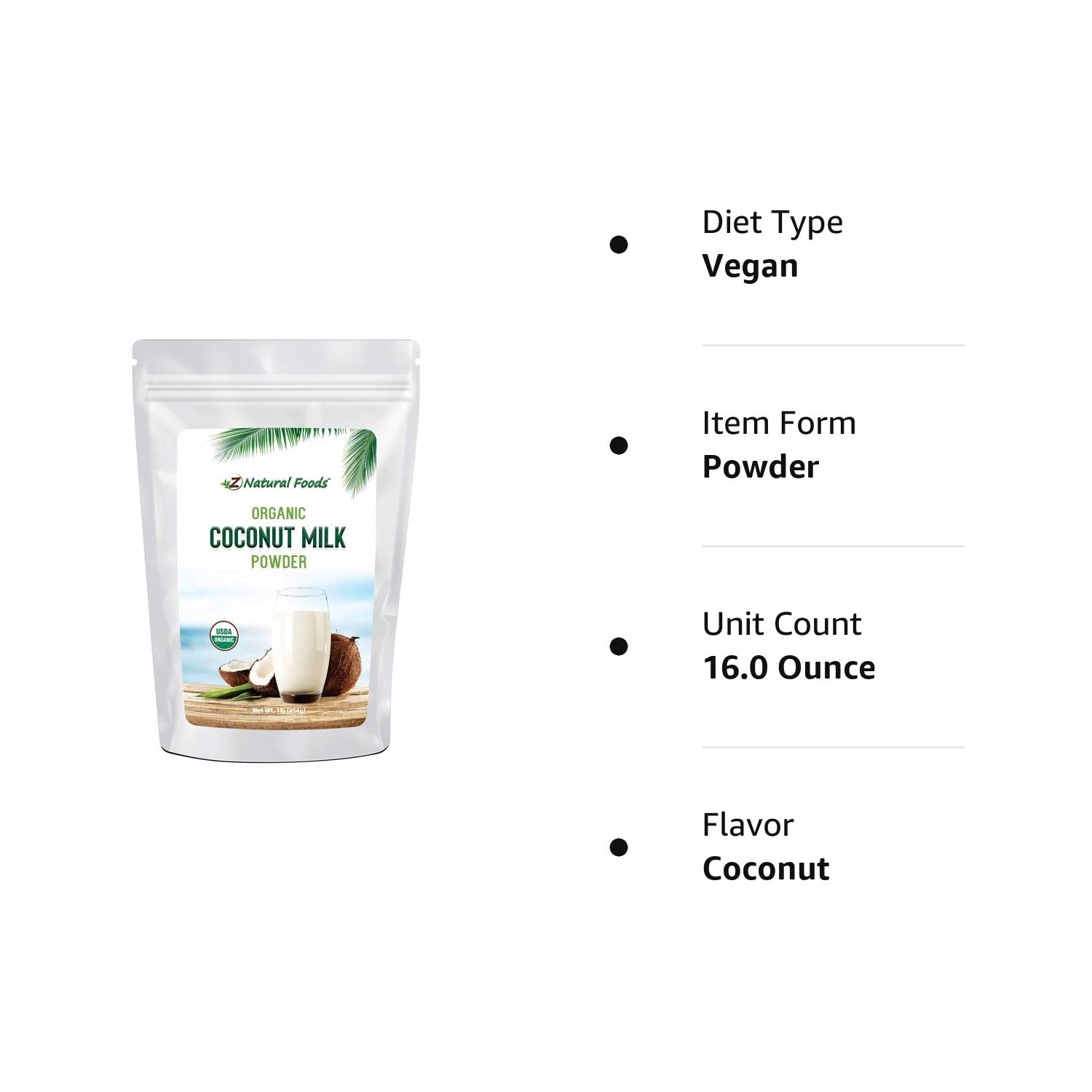 Z Natural Foods Coconut Milk Powder, Organic Coconut Milk, 100% Fresh, 1 Lb
