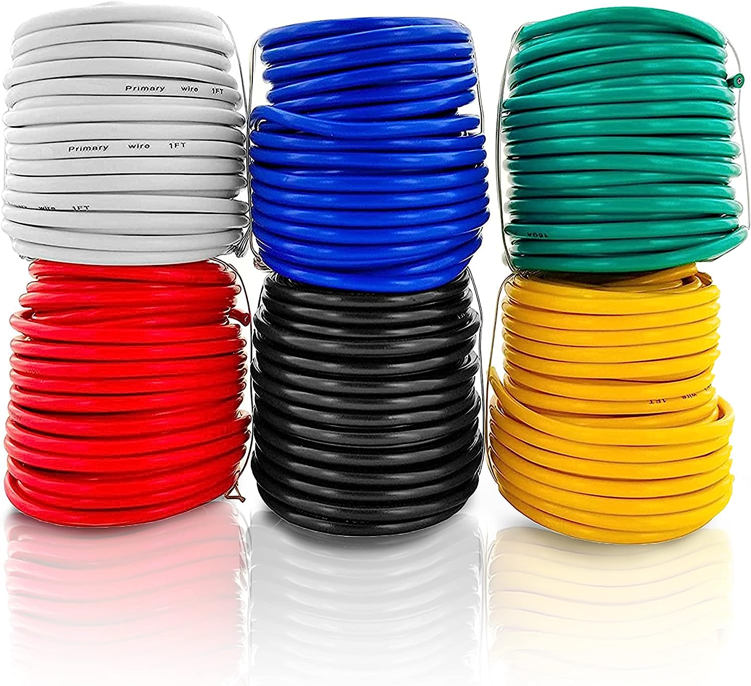 GS Power 16 AWG (American Wire Gauge) OFC Pure Copper Automotive Primary Wire 6 Roll Color Combo (50 Feet Roll, 300 FT Total) for 12V Car Audio Video Trailer Harness Wiring (Also in 14 & 18 GA Combo)