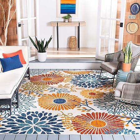 SAFAVIEH Cabana Collection Area Rug - 9' x 12', Creme & Red, Floral Design, Non-Shedding & Easy Care, Indoor/Outdoor & Washable-Ideal for Patio, Backyard, Mudroom (CBN832A)