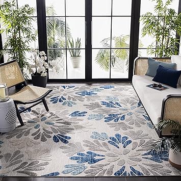 SAFAVIEH Cabana Collection Area Rug - 9' x 12', Grey & Blue, Floral Design, Non-Shedding & Easy Care, Indoor/Outdoor & Washable-Ideal for Patio, Backyard, Mudroom (CBN800F)