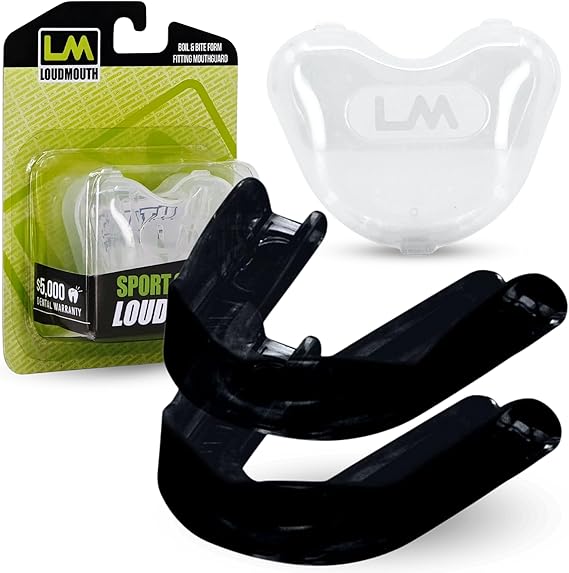 Loudmouth Sport Slim-Fit Boil & Bite Mouth Guard (2 Pack) Plus Mouthguard Case, Advanced Protection for All Contact Sports (Black)