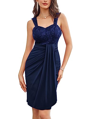 GRACE KARIN Womens Sequin Dress Sparkly Glitter Party Club Dress Wrap Hem Ruched Bodycon Dresses Navy Blue