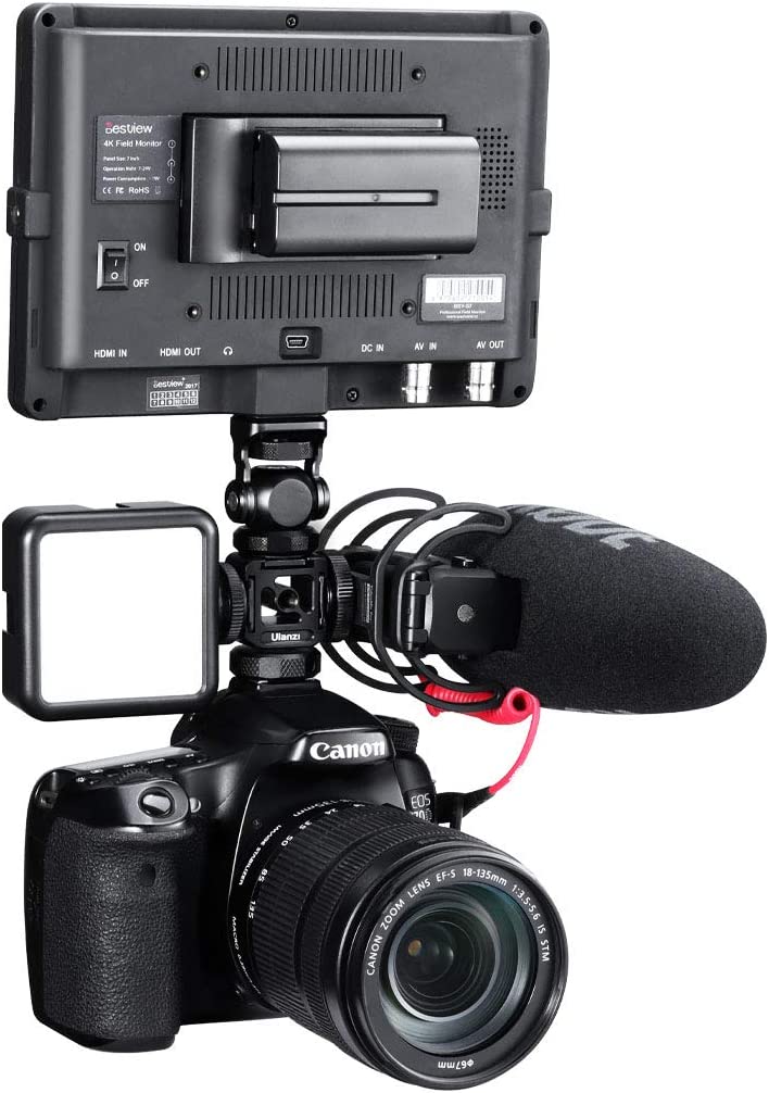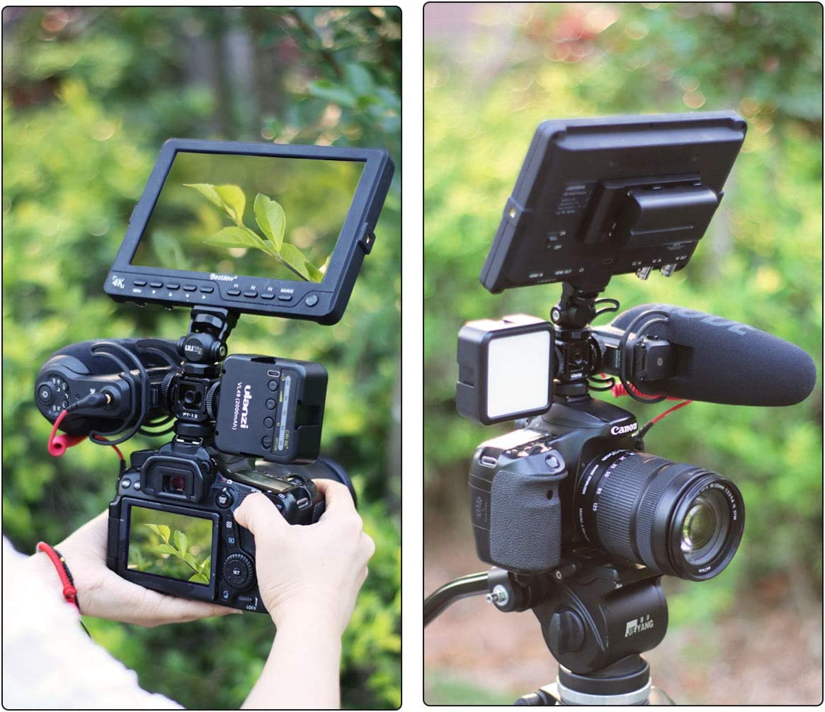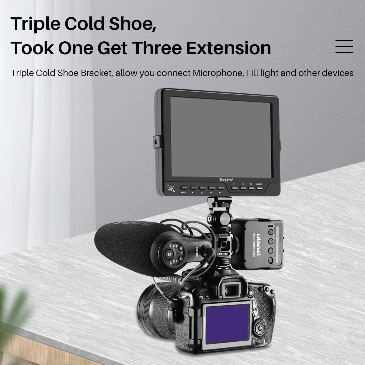 • Triple Cold Shoe --- Triple Cold Shoe Bracket, allow you connect Microphone, Fill light and other devices