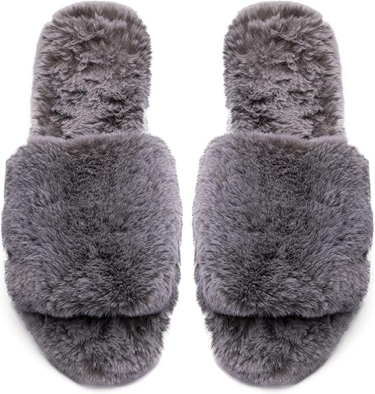Women's Soft Plush Faux Fur Lightweight House Slippers Fuzzy Memory Foam Spa Slip on Open Toe Cozy House Slippers