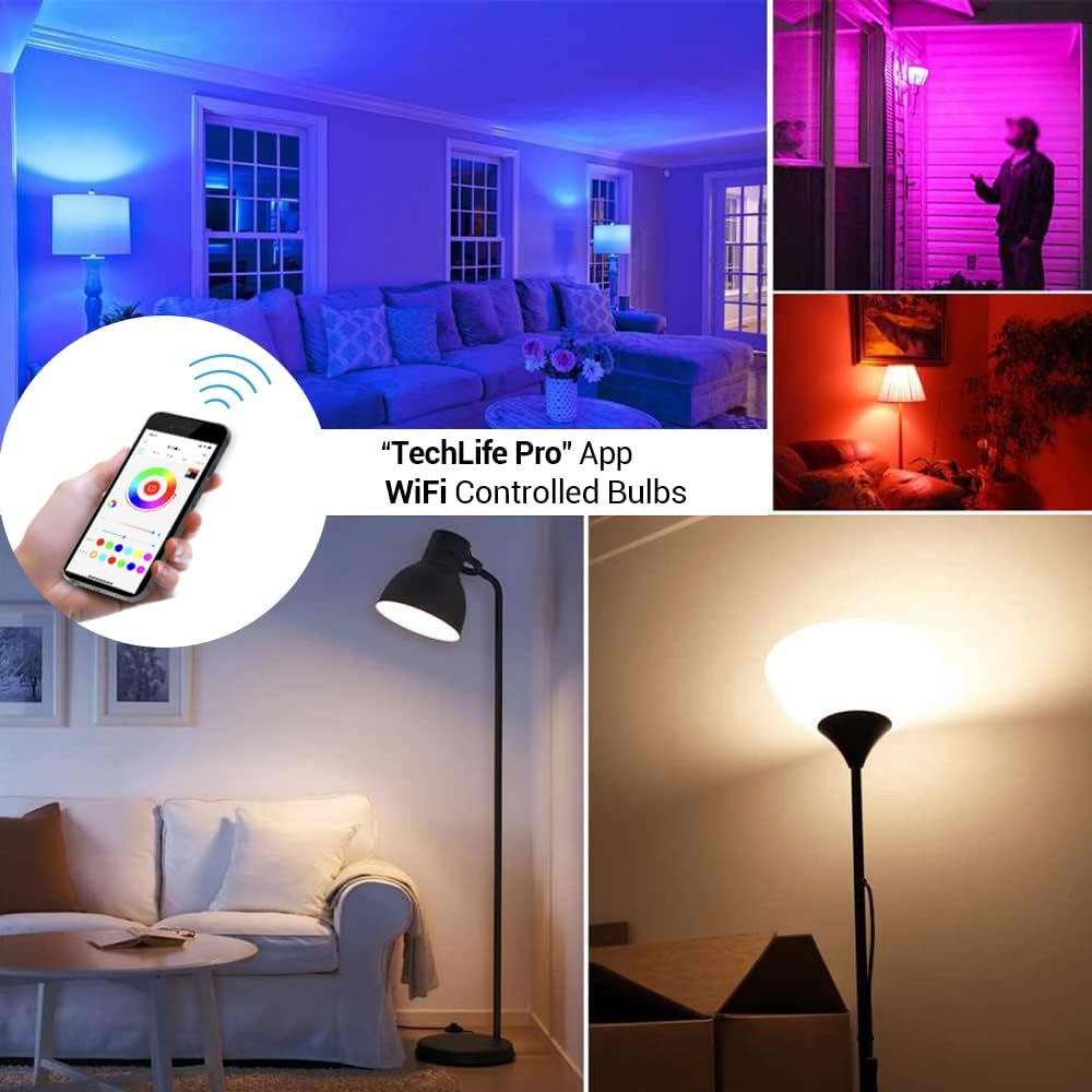 • 💡 【WiFi Controlled Light Bulb】 - Just download the "TechLife Pro" Android & IOS App on your phone and connect alexa smart light bulbs to your WiFi network, you can easily control the WiFi light bulbs when you are not at home or travel around, several smart bulbs can be group controlled through app for different rooms/scenes. Note: only support 2.4GHz..