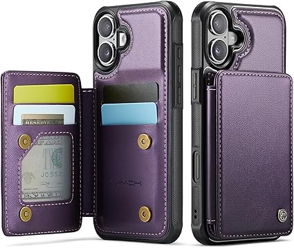 Vinich for iPhone 16 6.1" Wallet Case with Card Holder, RFID Blocking Credit Slots Kickstand Shockproof Phone Cover for Women Men, Purple