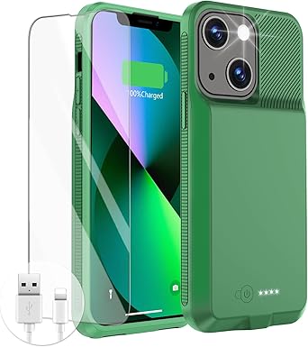 GIN FOXI Battery Case for iPhone 13/13 Pro/14/14 Pro, Ultra-Slim Charging Case Real 7000mAh Rechargeable Anti-Fall Protection Extended Charger Cover for iPhone 13/13Pro/14/14 Pro 6.1" Green
