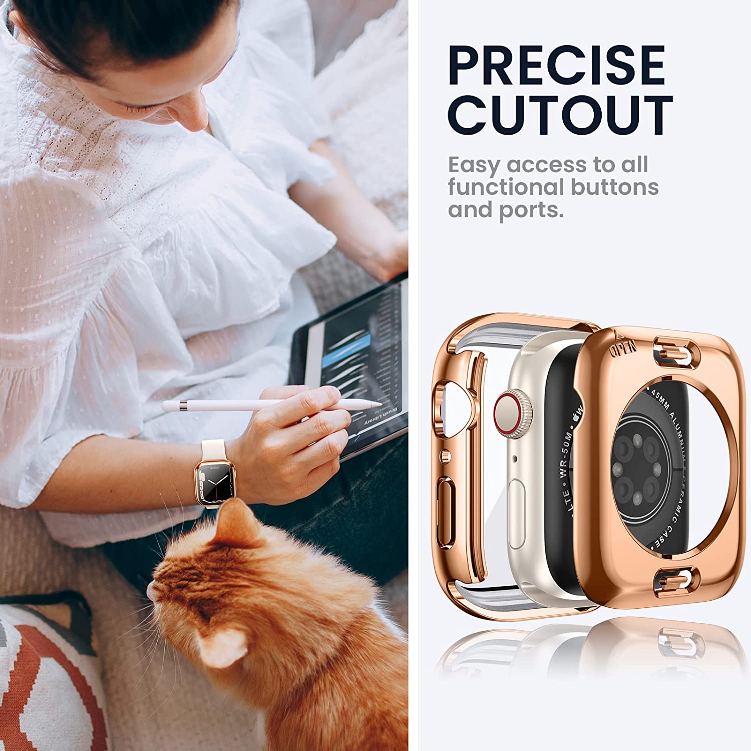 • 【Easy Installation】There is installation video on our product page and instruction is included in the package.【Easy Removal】- A removal tool is included to remove the case without damaging the watch.【What You Get】1 x 45mm Apple Watch front case, 1 x back cover, 1 x removal tool, 1 x cleaning tool. ( Smart watch, band and charger are not included ) All our products have limited one-year after-sale service. So if there are any problems with it, please contact us without hesitation.