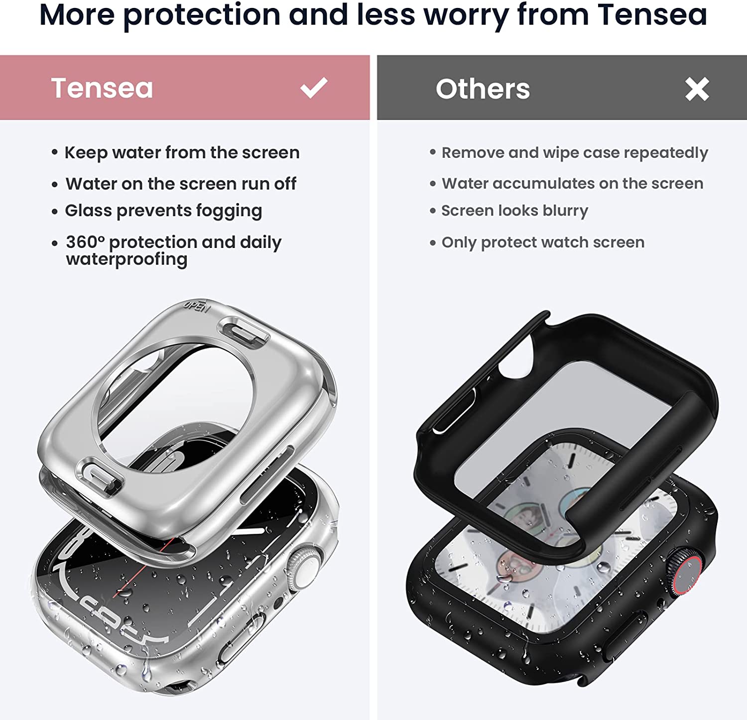 • 【DAILY WATERPROOF】The built-in seal ring keeps water away from screen, which means you no longer need to remove case repeatedly and wipe water. It is waterproof perfectly for daily wear - showering, hand washing, sweating, rain, etc. The oleophobic coating on the surface of tempered glass will not cause water to collect on the glass. [NOTE: Not suitable for deep waterproofing, such as diving and swimming, etc.]