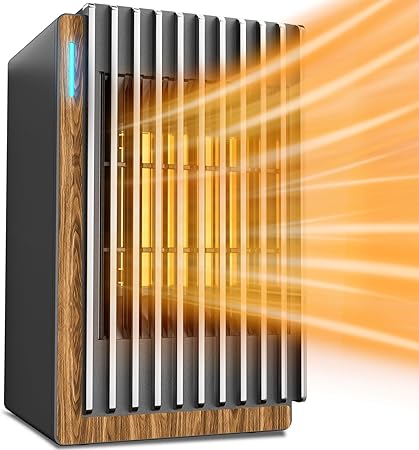 Space Heater, Small Space Heater, 1200W PTC Ceramic Heater with 2 Modes, 2-6h Timer, Tip-Over&Overheat Protection, Fireproof Material, Fast Heating for Bathroom Office Desk Indoor