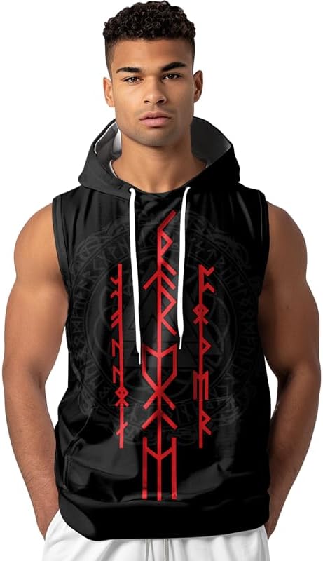 Viking Men's Sleeveless Workout Hoodie Hooded Bodybuilding Muscle Cut Off Tank Tops Gym Fitness