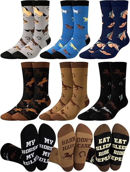 Eurzom 6 Pairs Novelty Horses Socks for Men Funny Gifts Holiday Crew Dress Socks Western Cowboy Riding Gift for Horse Riding Lovers Equestrian Derby Party