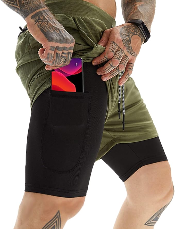 OEBLD Mens Athletic Shorts 2-in-1 Gym Workout Running 7'' Shorts with Towel Loop