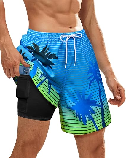 Mens Swim Trunks with Compression Liner Quick Dry Bathing Suits Board Beach Shorts Swim Shorts with Zipper Pocket